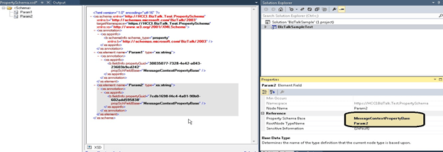 - Promote the elements (Param1 and Param2) from message schema whose elements are going to use in GET API URL. Map the elements with property schema element names and namespace as below.