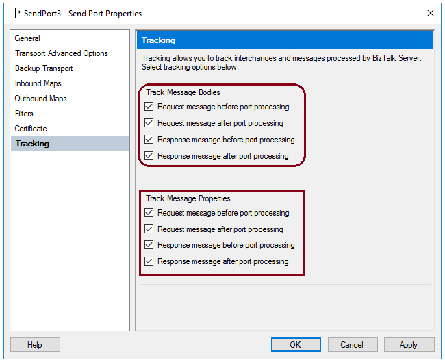 Apply Message tracking on Send port: