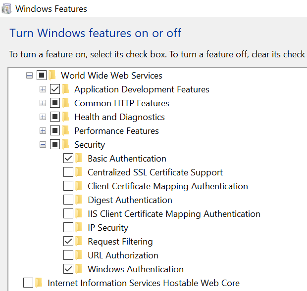 - Windows Authentication & Basic Authentication (Under: Web Server (IIS) -> Security)