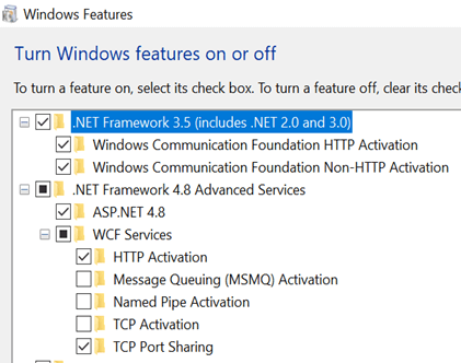 - Features: –WCF & HTTP Activation for both .Net 3.5 and 4.0/4.5