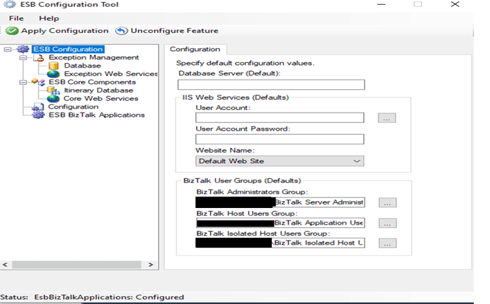 - After installation, go to C:\Program Files (x86)\Microsoft BizTalk ESB Toolkit\Bin and Launch ESB Configuration Tool