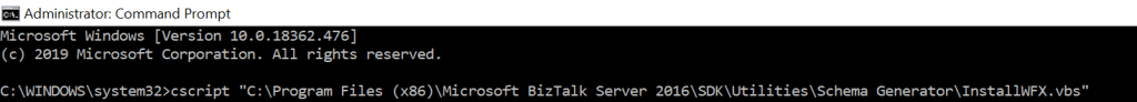 cscript “C:\Program Files (x86)\Microsoft BizTalk Server 2016\SDK\Utilities\Schema Generator\InstallWFX.vbs